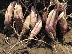 べにはるかを3株掘りました。全体的に大きくて700g位のものが数本あり、なかなか堀りごたえでした。合計は6s位になったと思います。手持ちのプラスチックのシャベルでは心もとなかったので、金属製のシャベルを貸していただいて助かりました。