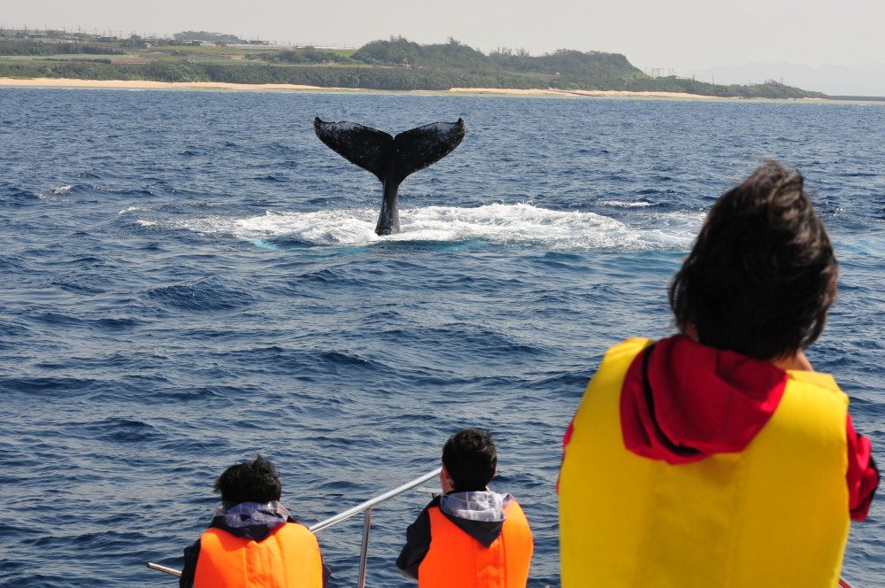 【午前便】ジャングリア沖縄に一番近いホエールウォッチング!愛犬も乗れる少人数制が好評♪ ファミリー・女性同士・カップルに人気☆
