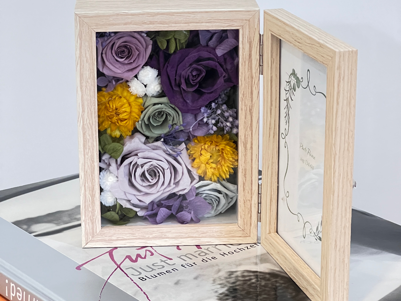【当日予約OK★】福岡市「プリザーブドフラワーで作るフォトスタンドレッスン」プレゼントに最適なLサイズの写真立てのワークショップ!出産祝・結婚お祝い・誕生日祝・卒業祝など贈り物に最適!女性に人気です