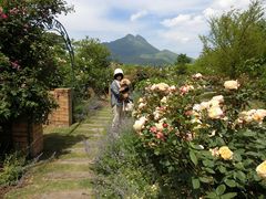 由布岳を望む薔薇