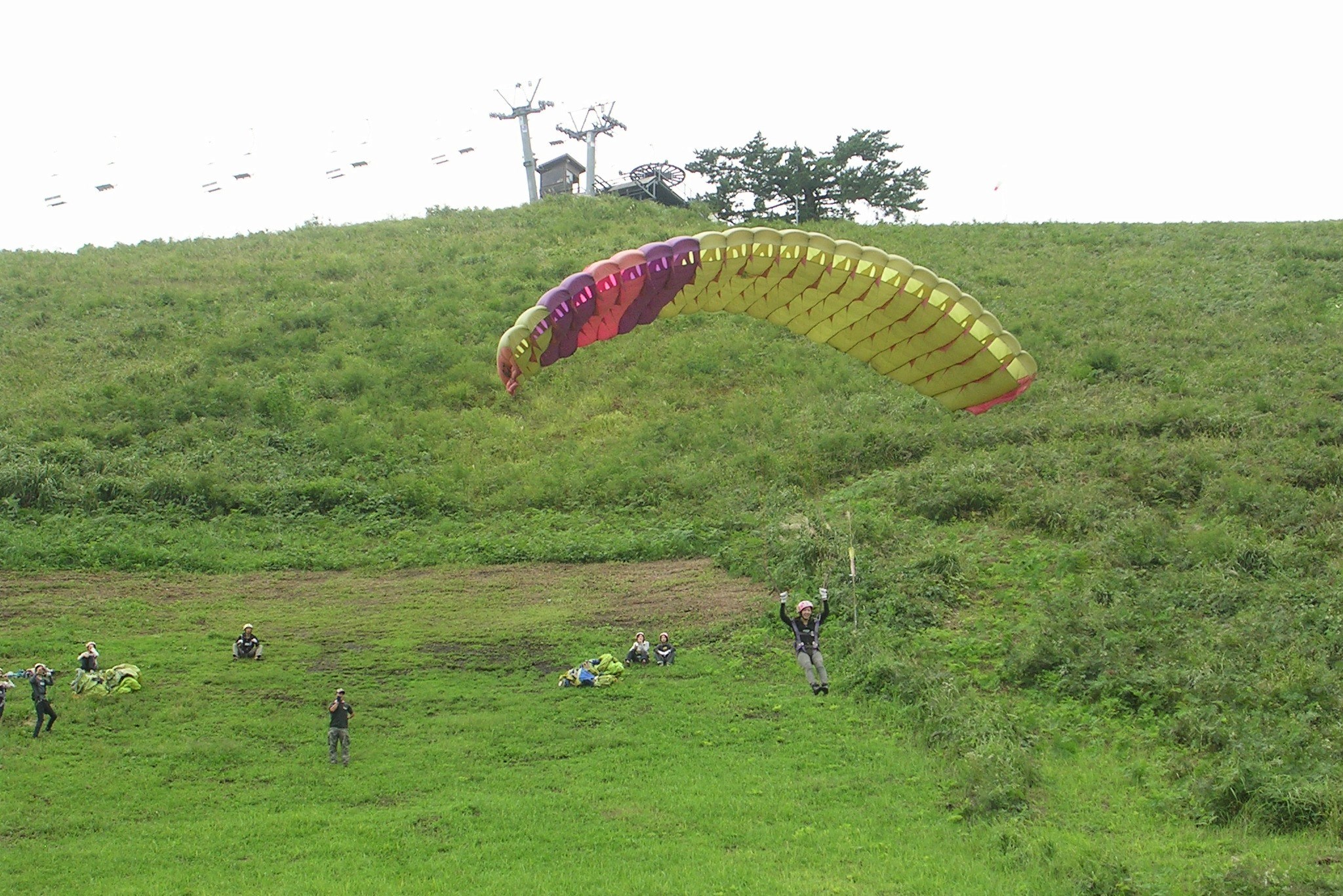 生憎、風の状況が悪く100メートルから飛ぶことは出来ませんでしたが、スタッフの皆様のサポートのお陰で楽しく過ごす事が出来ました。