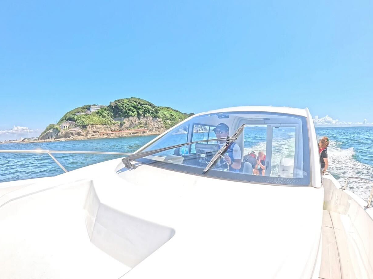観光名所の江の島からプレジャーボートに乗船!海上から烏帽子岩や富士山の絶景を見ながら