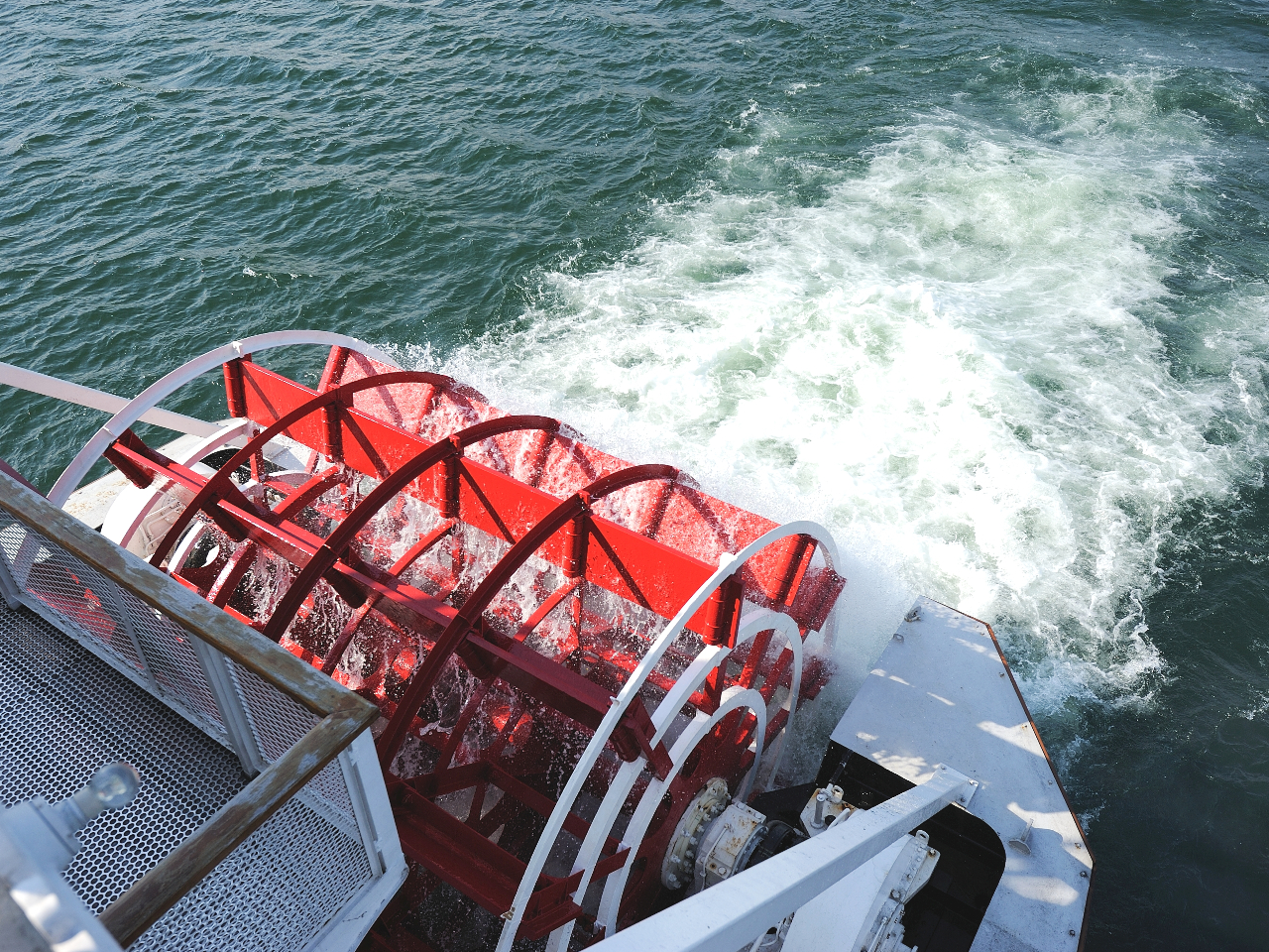 ミシガンのシンボル!後部外輪(パドル) 水しぶきをあげて回る様子は迫力があります。