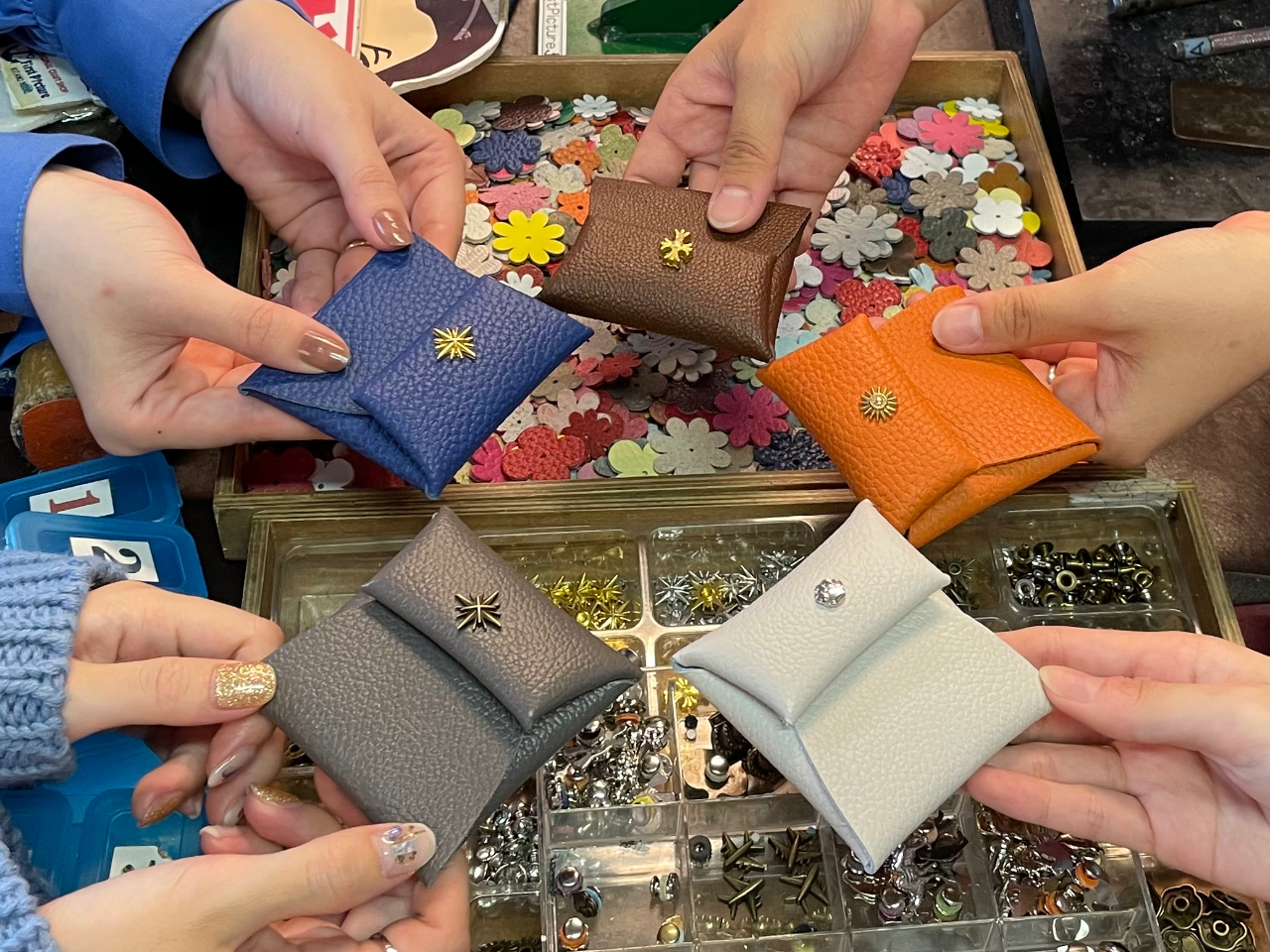 新店舗で楽しむ!神戸ならではの上質シュリンクレザーを中心にラインナップ! 気軽に簡単に作れます 所要時間30分程度です 楽しんでくださいね