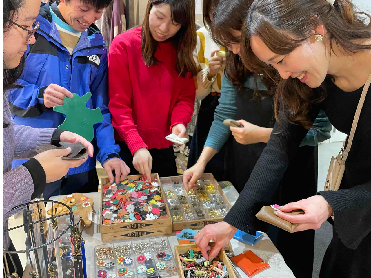 大人気のコインケースアレンジ! 飾りと革をチョイスして、マイワンを作ろう!簡単にすぐ出来ますよ