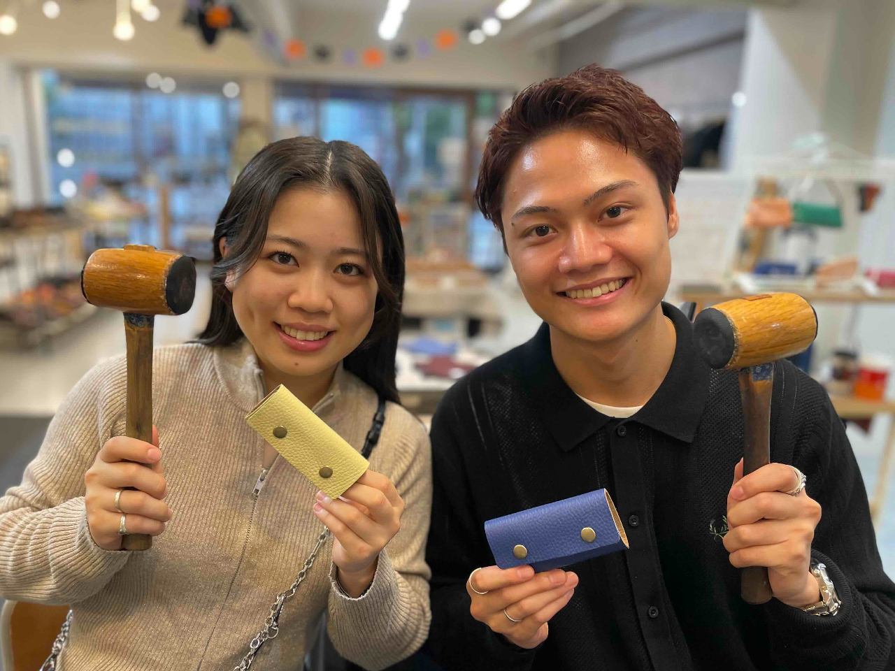 【神戸で遊び体験】人気のクラフトメニュー 『キーキーケース作り』ダブルボタンorシングルボタン選べる 上質牛革で自分だけのMY ONEを♪ *学生、新社会人にもおすすめ*