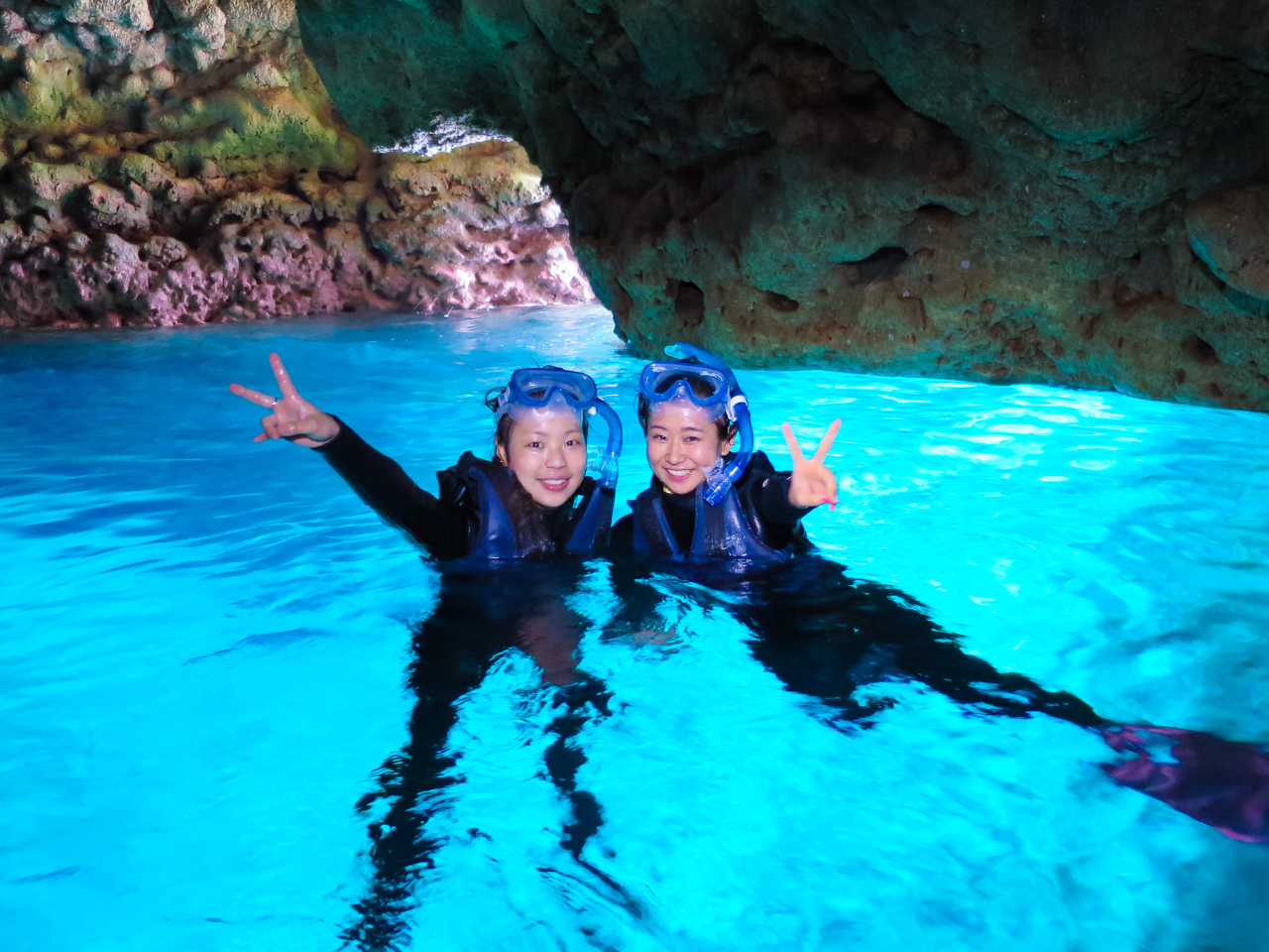 1)青の洞窟シュノーケルと美ら海体験ダイビングの大満足セット