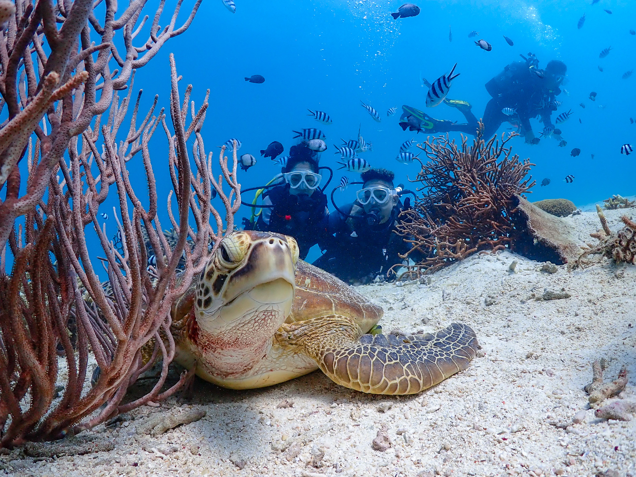 ・鮮やかな珊瑚礁や白い砂地もご注目♪