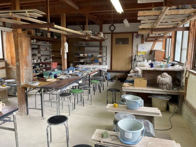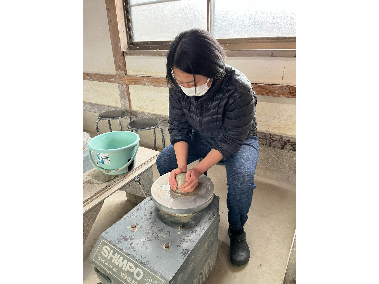 久美浜で陶芸を作り続けて40年以上のご主人と娘、婿が丁寧に教えてくれます。