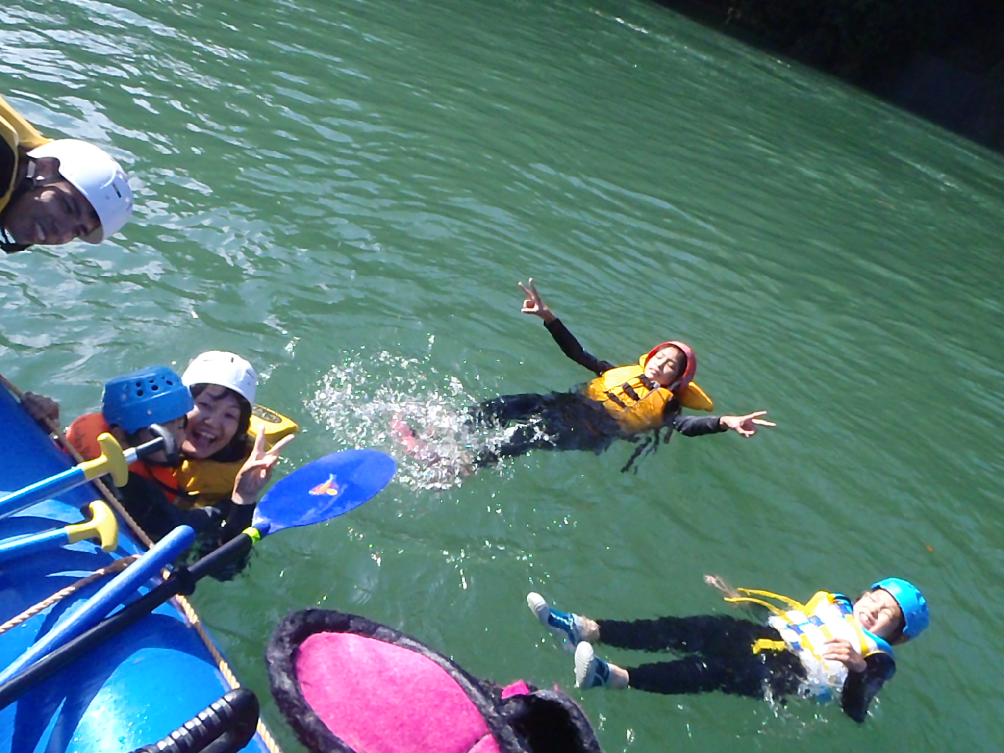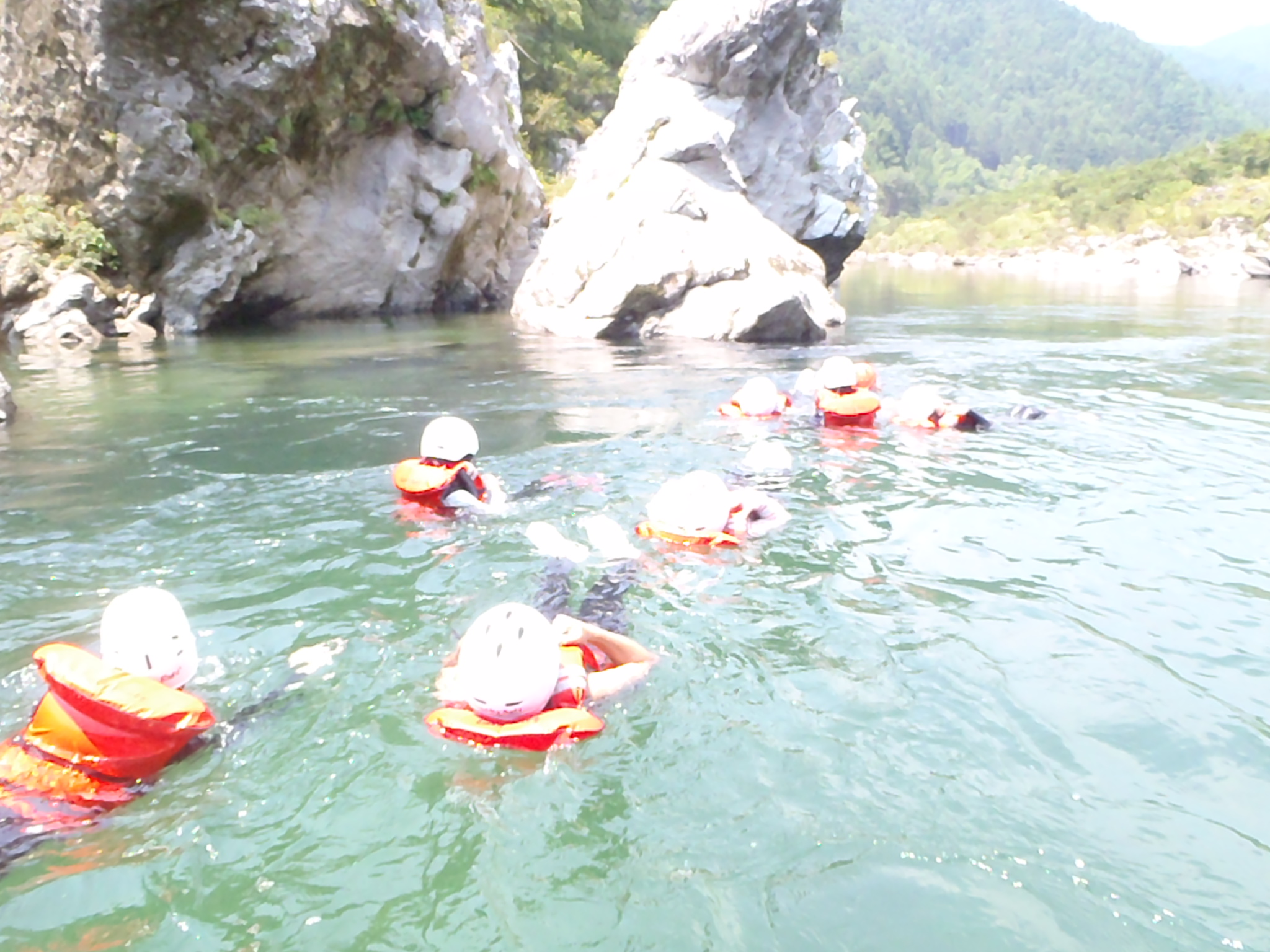 ◇瀬(波)を乗り越えた後は、ボートや岩の上からの飛び込みやぷかぷか浮いたりして川遊びします☆