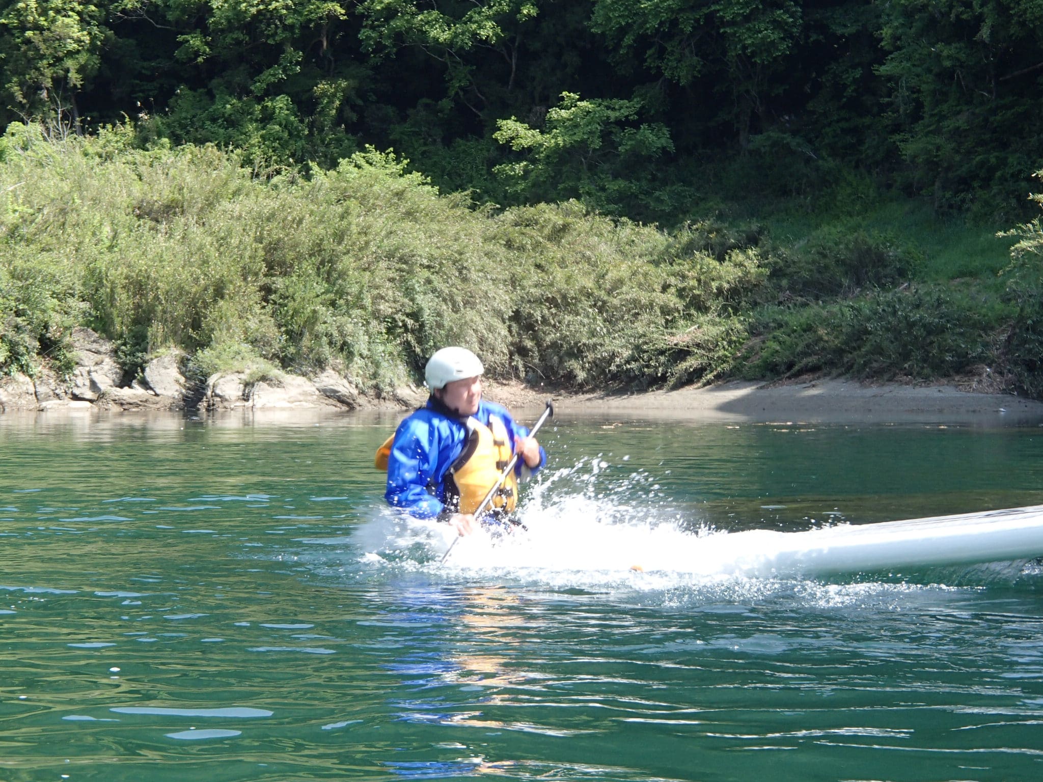 吉野川カヌー☆四国吉野川を二人乗りのゴム製のボート(ダッキー)のインフレータブルカヌーを使って二人又は一人で川くだりにチャレンジします♪ラフティングよりも低い視線で少しドキドキしながらの挑戦です!!