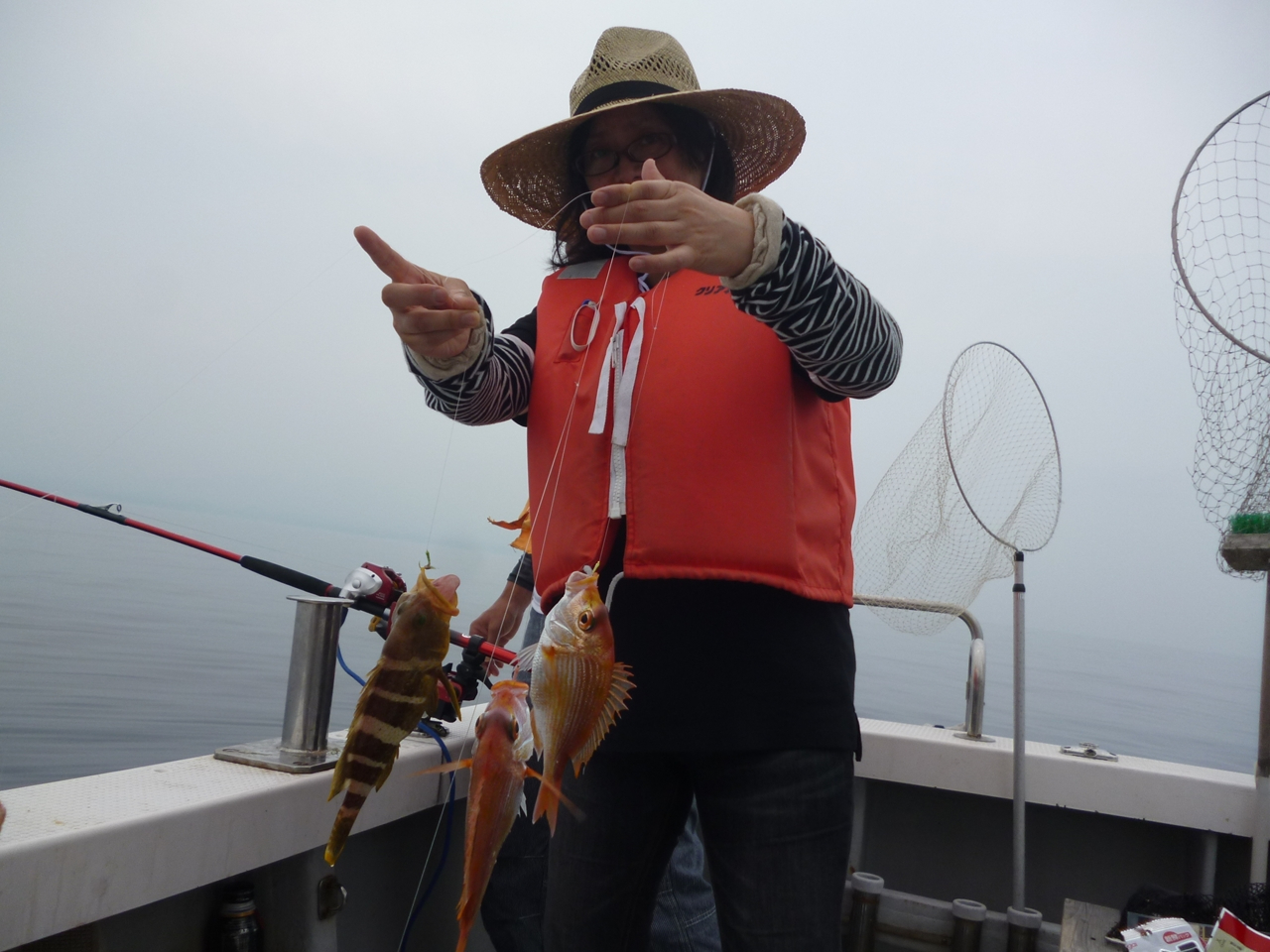 初心者でも安心な手ぶらコースは皆生漁港付近の水深30m以下の漁場で、主にアジやカサゴ等をねらいます。