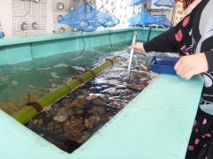 こちらの水槽に常時、約500個のアコヤ貝が生きてます、お好きな貝を選んで下さい。