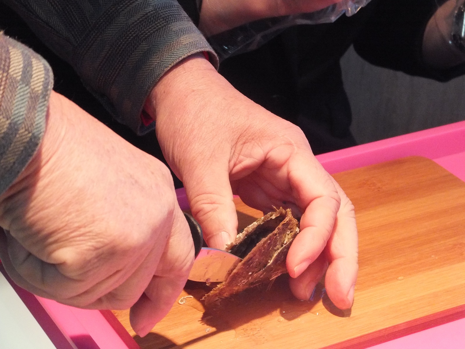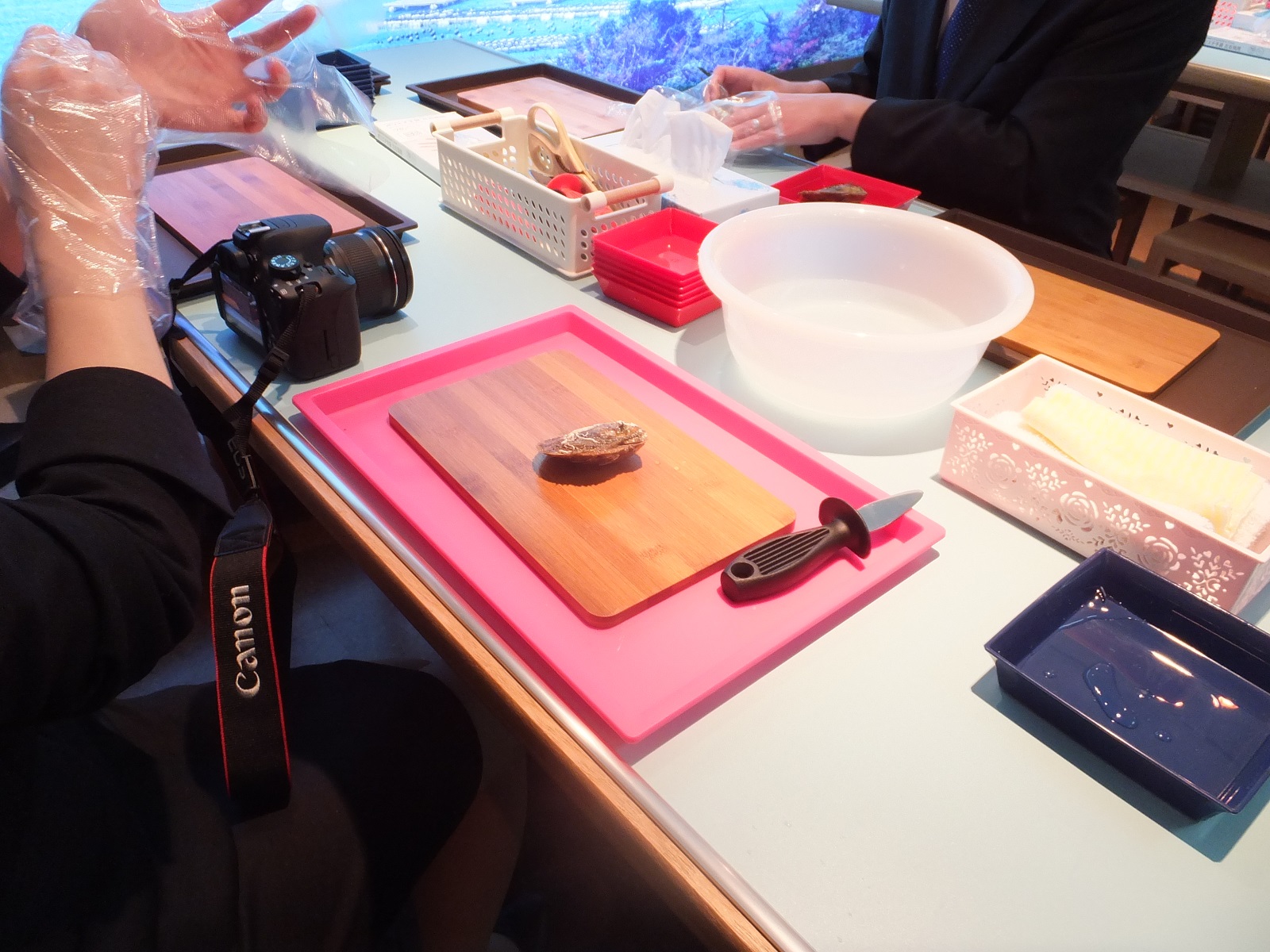 Bさぁ、いよいよあこや貝をご自分の手で開けましょう。期待と緊張が高まります。