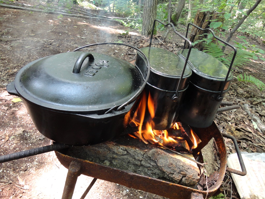 作業の合間には、ダッチオーブンを使った本格野外料理でアウトドアランチ。