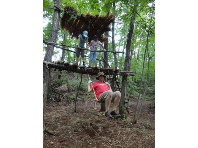親子で森の中のヒミツキチ・ツリーハウス作りにチャレンジ!