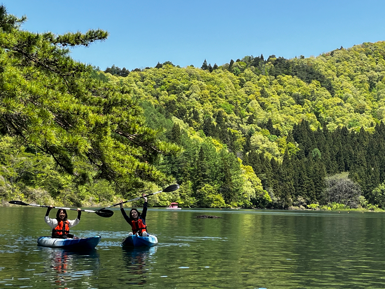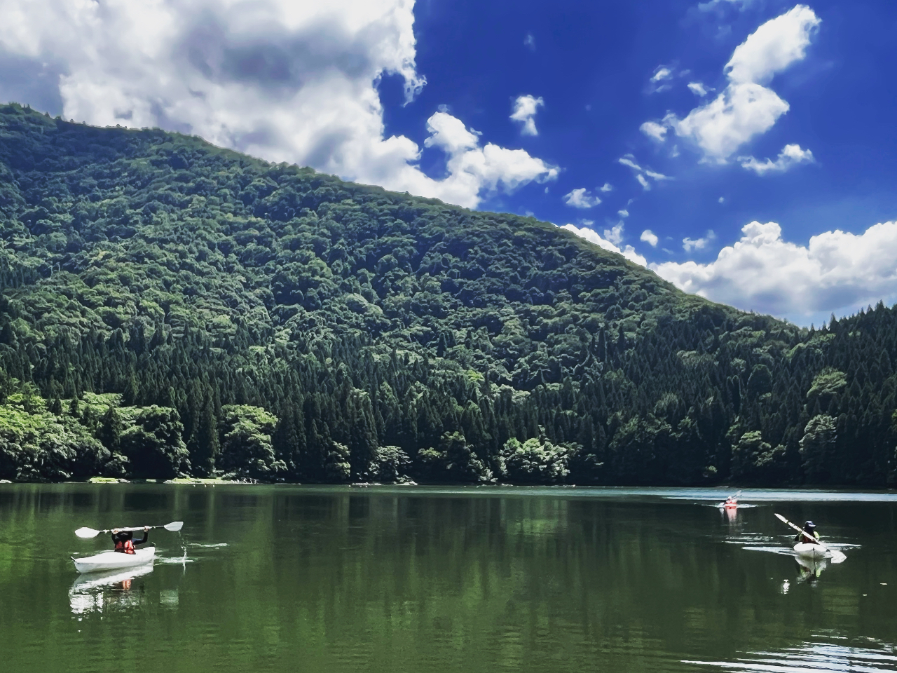 神秘の湖、北竜湖。エンジン付きの船は居ないためとても静かなロケーションです。