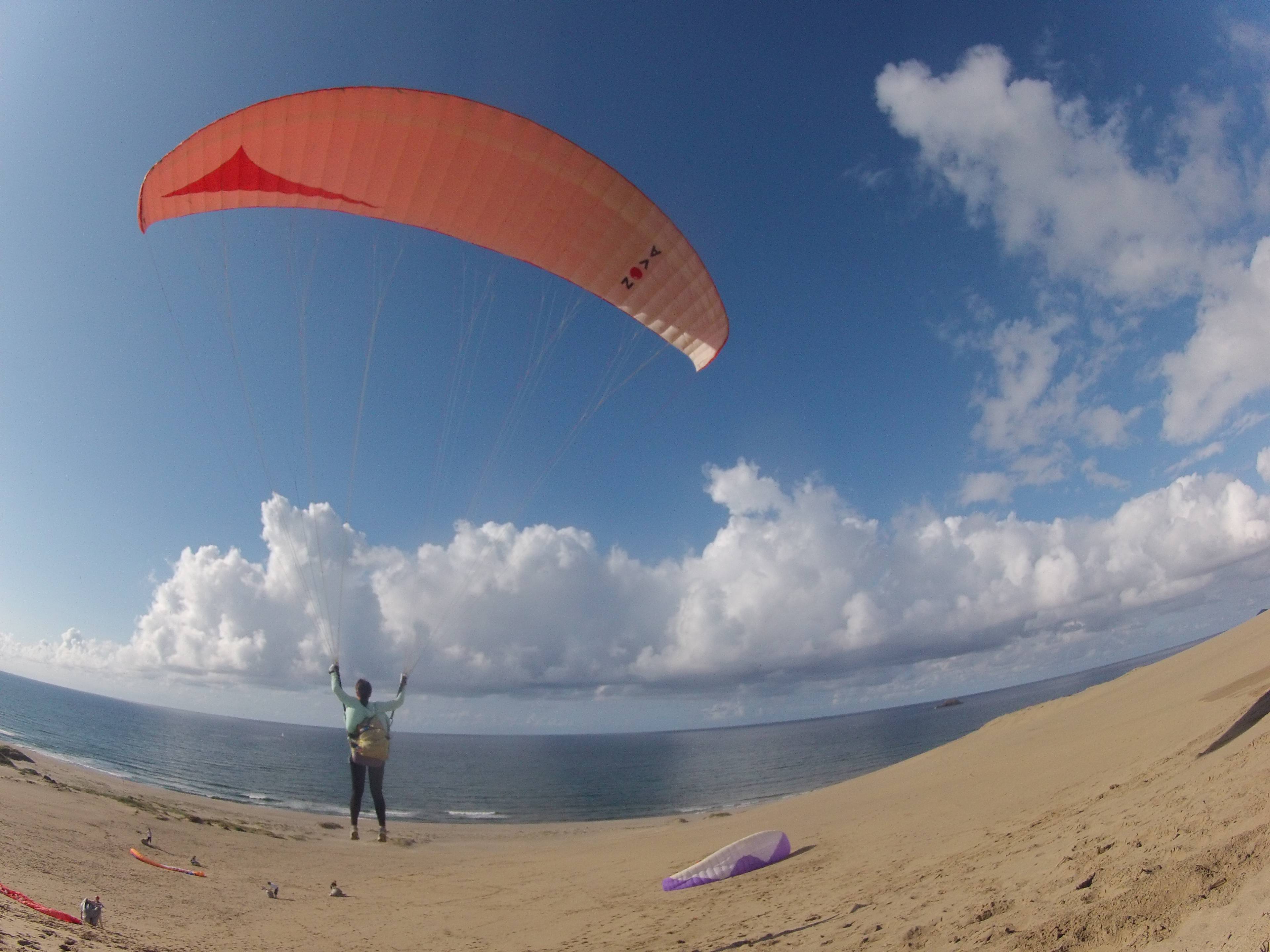 鳥取の広い砂丘の高台からパラグライダーをすると