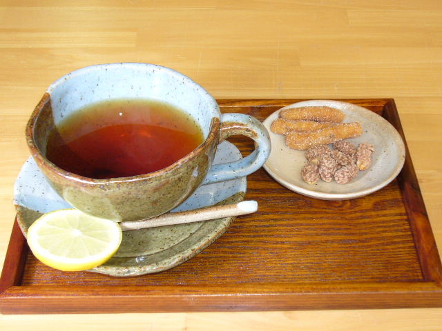 店内にある常滑焼を眺めながらティータイムをお楽しみください。