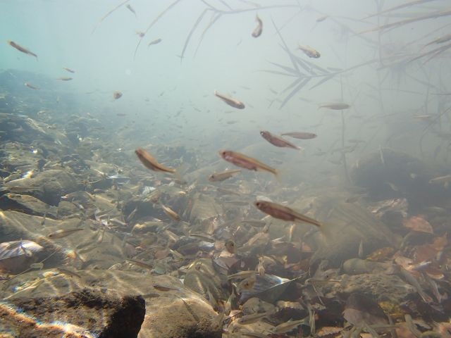 真夏は小魚がたくさんいる支流で小魚を見たり。