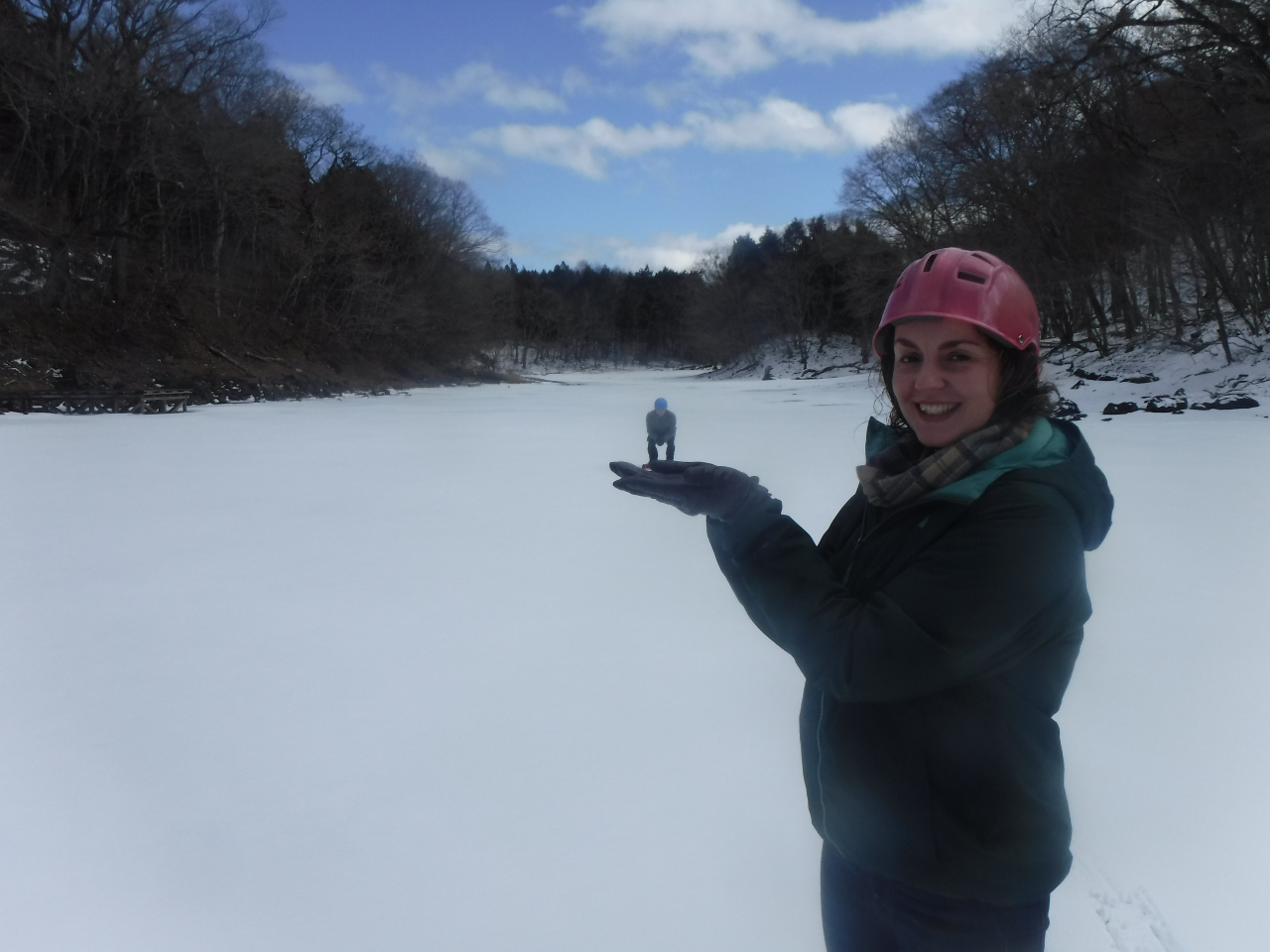 凍りつく沼の上を歩くのはワクワクドキドキ♪