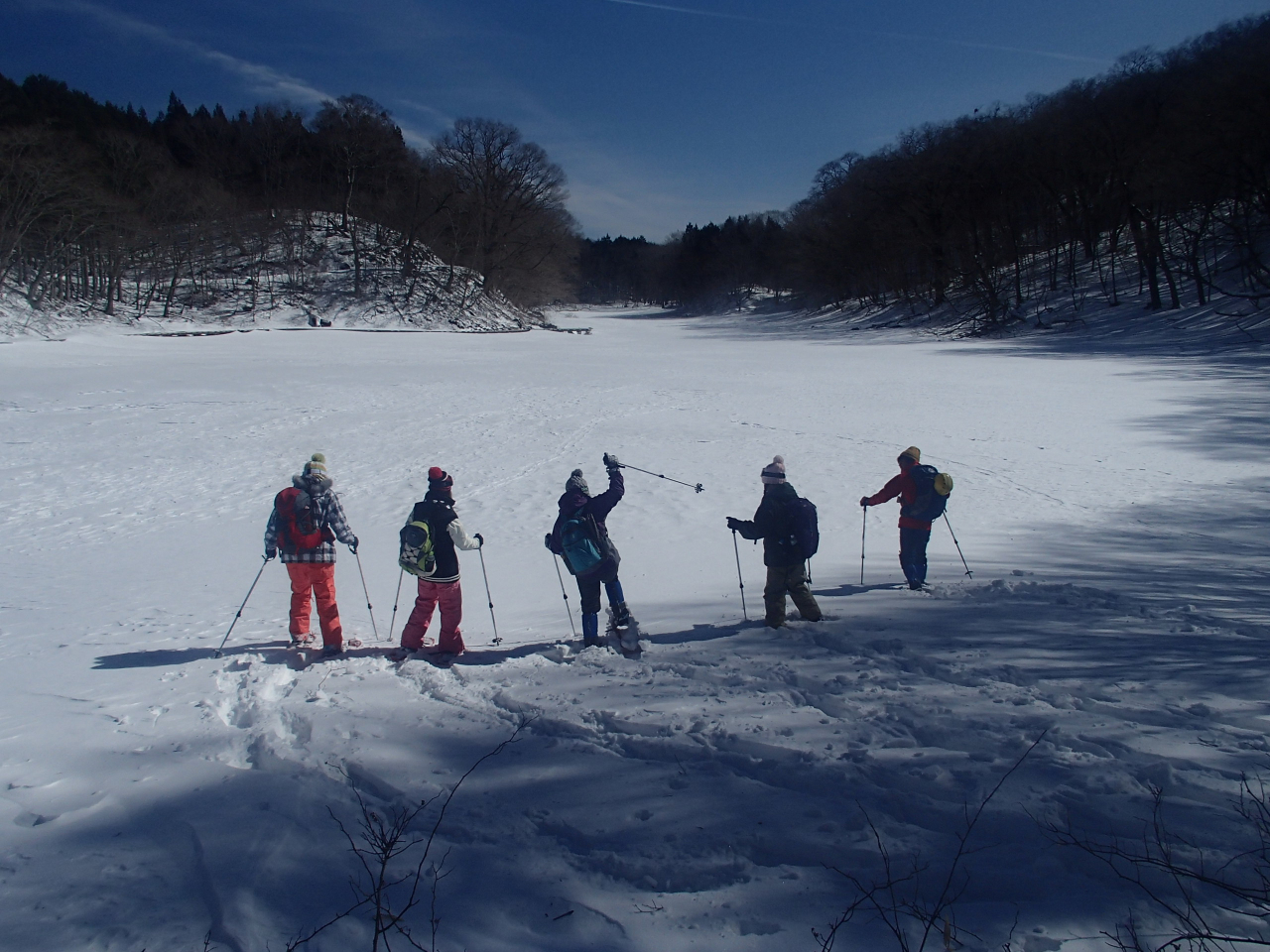 期間限定で凍りつく沼の上をスノーシュートレッキングします。
