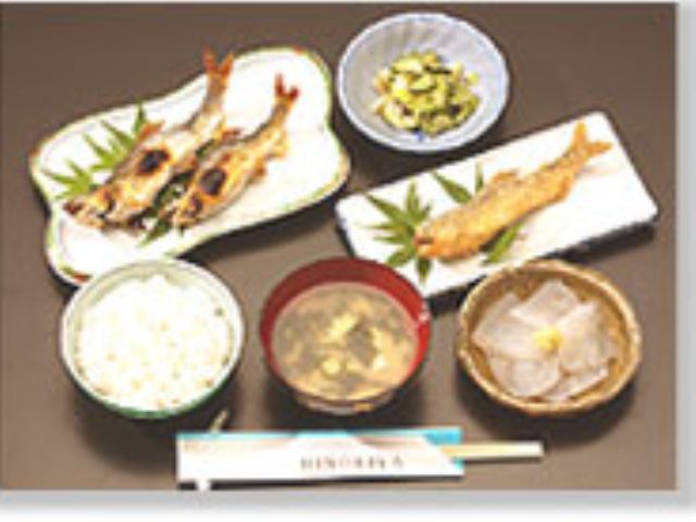 • オプションで炭火で焼かれたアユが付く「ひのきや」特製アユ定食をご用意いたします。那珂川の絶景を見ながらゆっくり楽しんでください