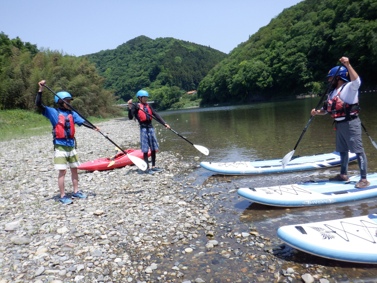 流れの穏やかなところでレクチャーしますので、すぐにSUPの操作に慣れることでしょう。SUPがまったく初めてでも問題ありません。安心してご参加ください。