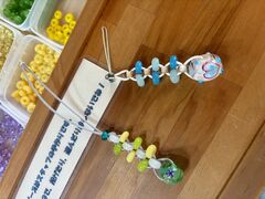 作ったとんぼ玉と一緒にビーズを組合せて飾り付けをする事が出来ます。(1つ100円)