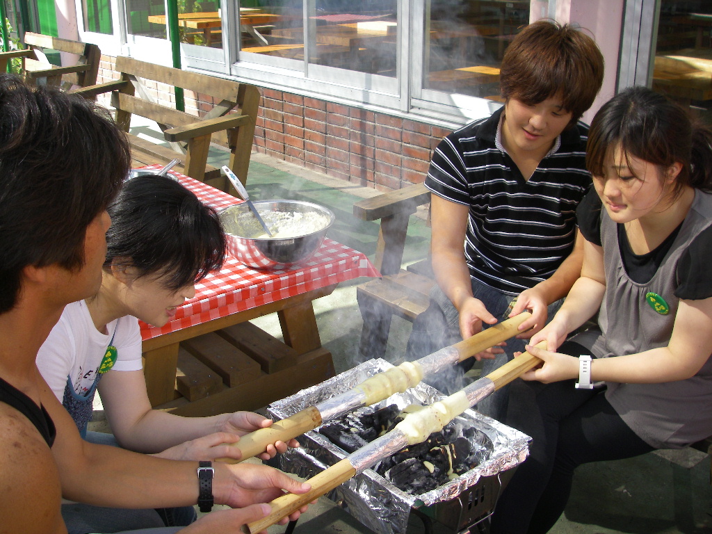 完成した頃には、みんなの間にもバウムクーヘンのような