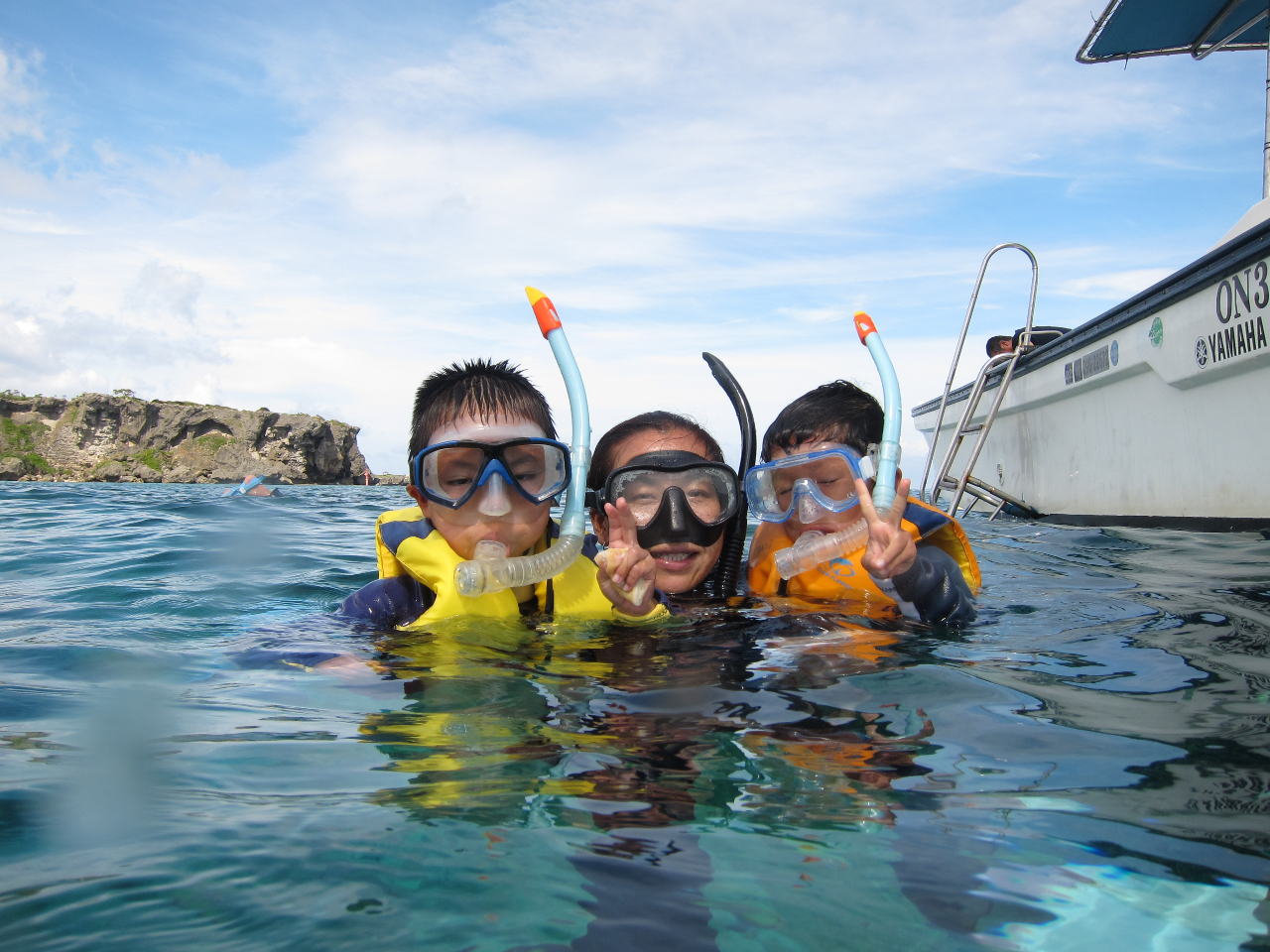 他店では始めから終りまで“浮き輪から手を離しちゃだめ”って言われたりするけど当店のスノーケルではインストラクターの管理下の下自由に泳いでいただきます。