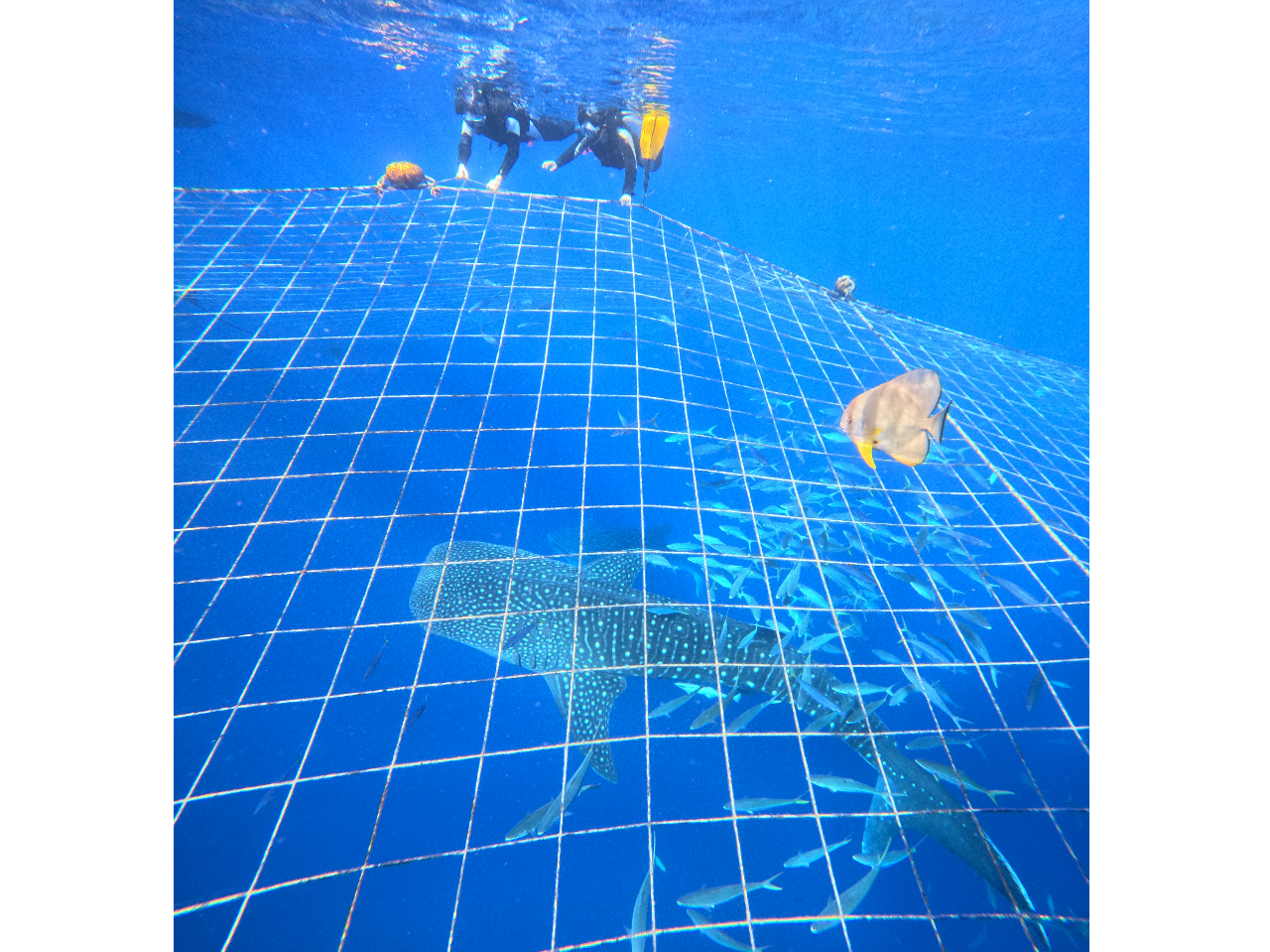 ・スノーケルの方は網の上からでっかいジンベエザメと見る事が出来ます。