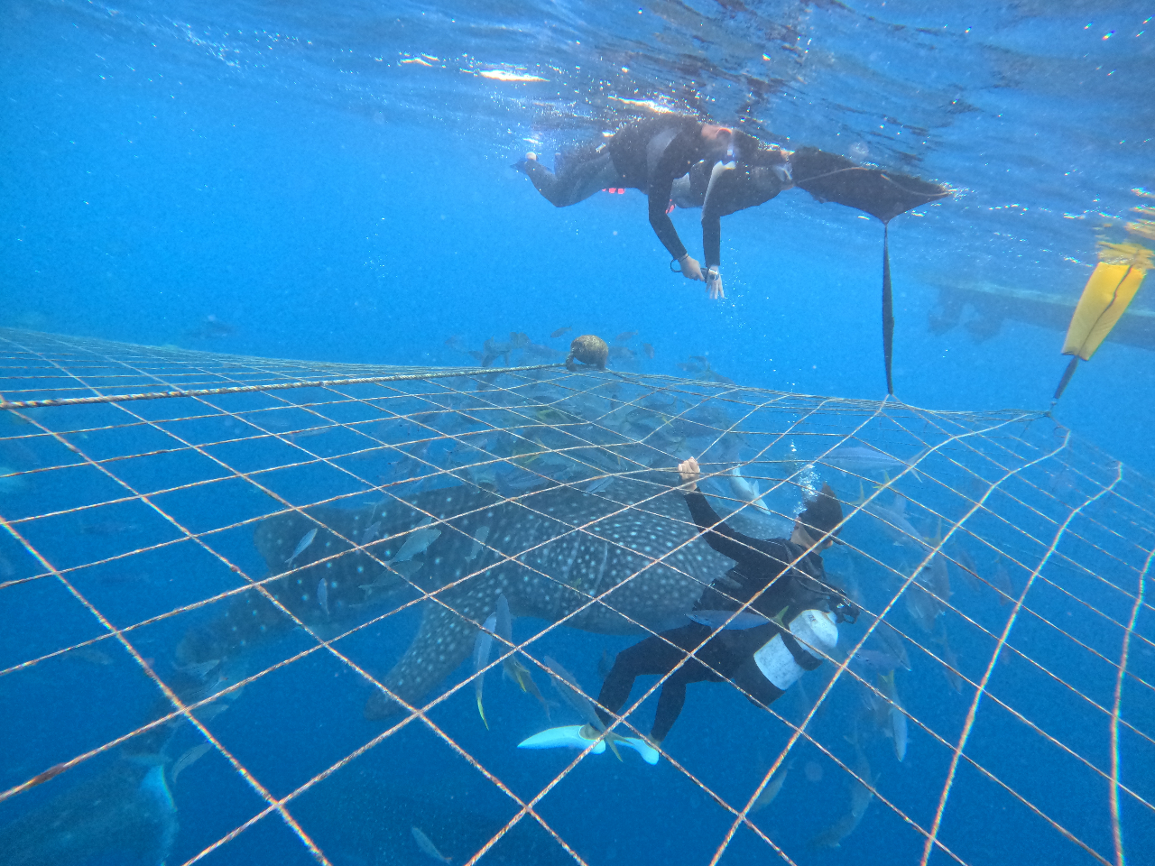 ・スノーケルの方は網の上からでっかいジンベエザメと見る事が出来ます。