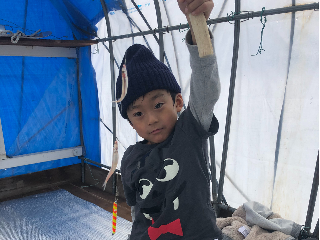 魚のアタリがわかりやすいようにこだわりの穂先を使い、リールのメンテナンスも日々行っております。仕掛けは手作り!小屋は移動可能ですので魚群探知機を使い魚の群れをキャッチ!穴もあけてあり、仕掛けもガイドが事前にセットしますので講習を受けた後すぐに釣りがスタート出来ちゃいます。