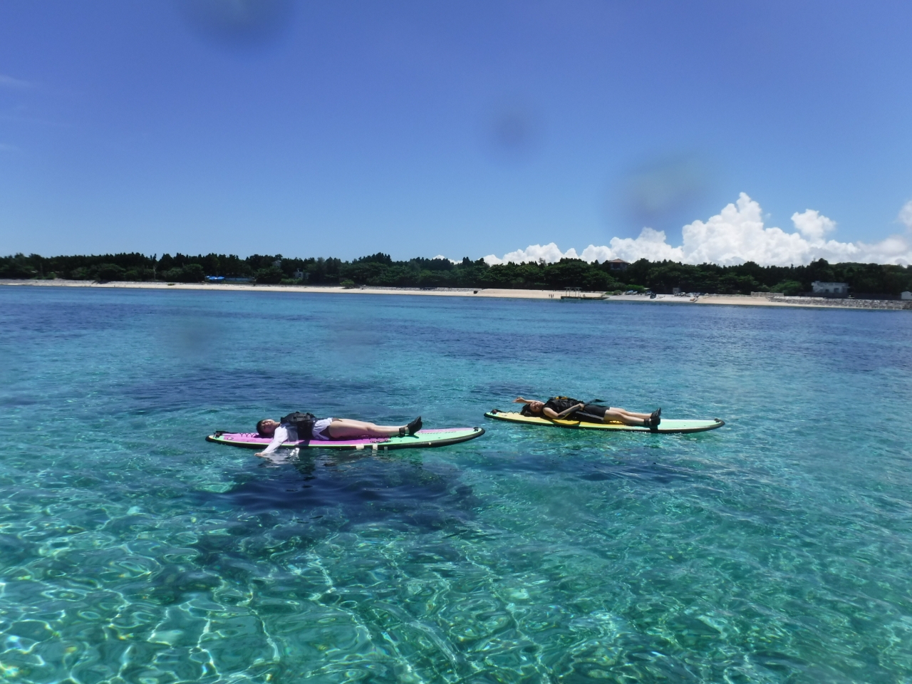 今流行り!海の上で立って漕ぐ大人気のSUPを本部ブルーの海で満喫!!