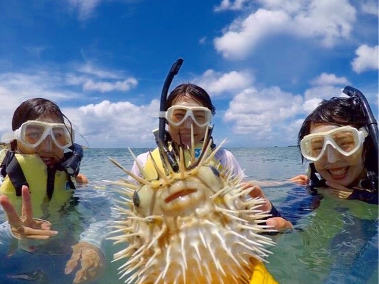 本部ブルーの海で気軽にシュノーケリングが楽しめます!!シュノーケリング・ボートシュノーケル