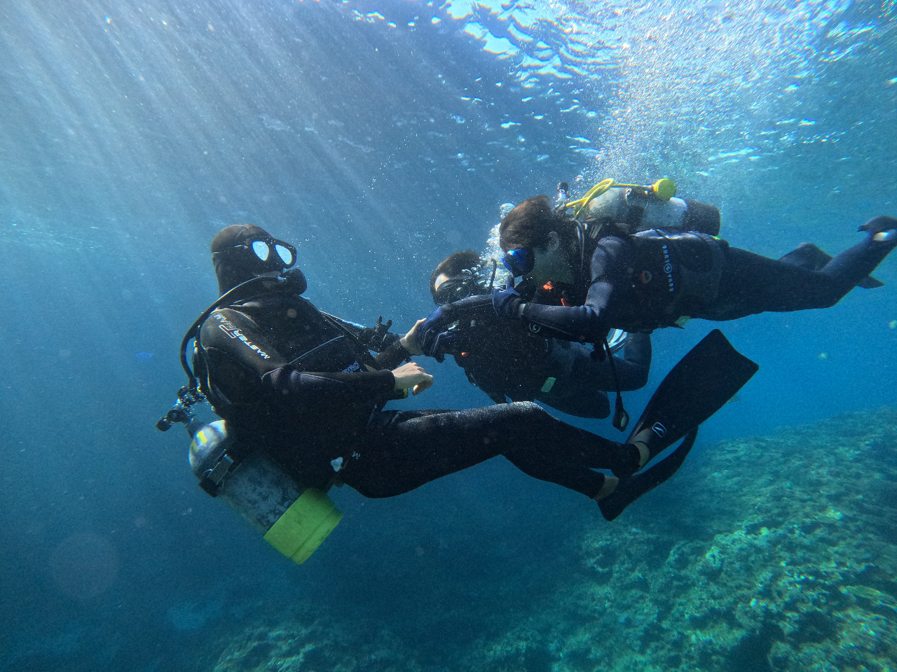 フルフェイスマスクで快適なダイビング♪水が苦手な方も安心してご参加できます。