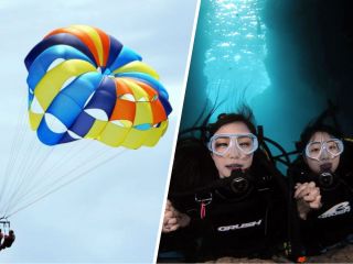 ・青の洞窟体験ダイビングと恩納村パラセーリングの欲張りセットプランです♪