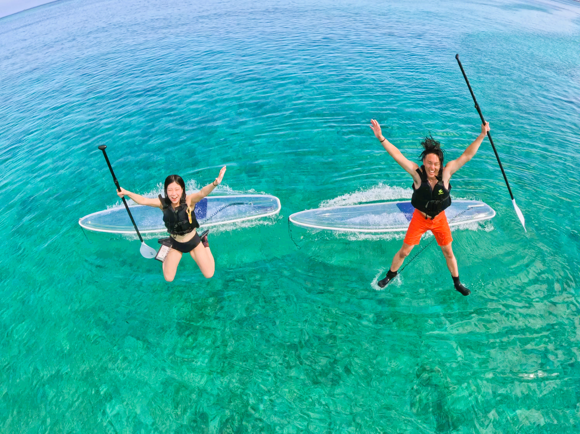 【沖縄/恩納村/クリアサップ】カップル・お友だちと♪透明のボードで沖縄の美しい海を満喫♪カメラ撮影付き♪安心の少人数制♪当日予約OK♪