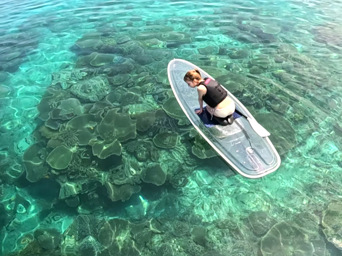 透明のボード「クリアサップ」でお魚やサンゴ礁を見て楽しむアクティビティになります。