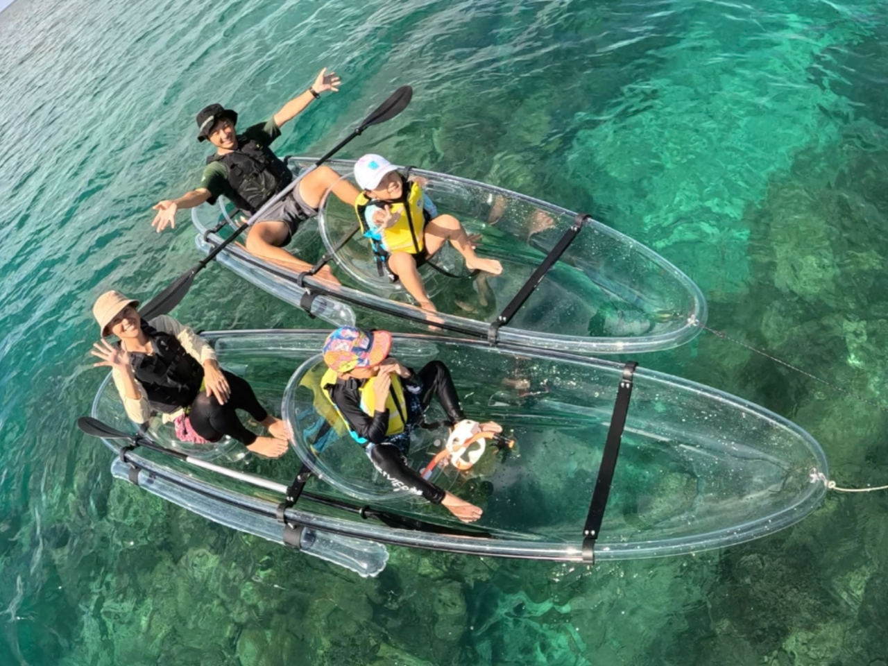 【沖縄/恩納村/クリアカヤック】お子様連れ・ご家族で♪透明のカヤックで沖縄の美しい海を満喫♪カメラ撮影付き♪安心の少人数制♪当日予約OK♪