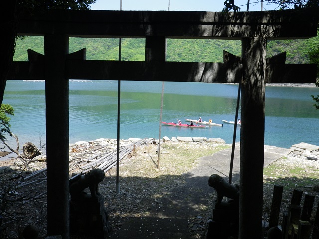 海から参拝する城山の八幡神社「大吉戸神社」の鳥居。