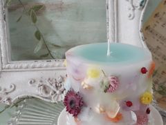 可愛いドライフラワーを詰め込んだキャンドルまで、