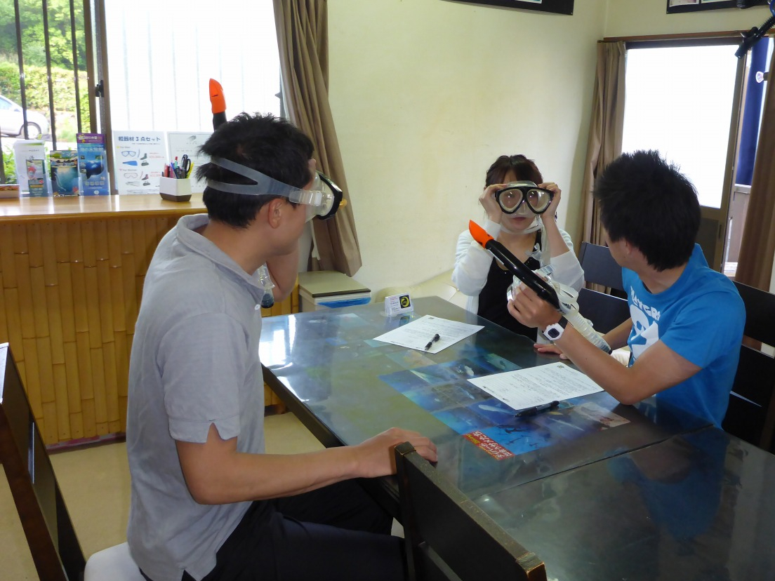 まずは陸上でしっかり器材のレクチャーをしてから、水面で練習をして潜りますので、安心してダイビングを楽しめます!