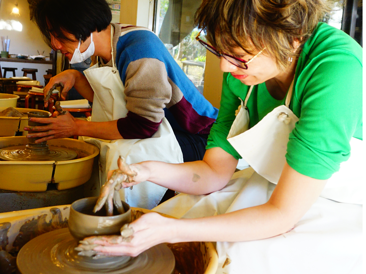 焼成費込で2個作成の安心価格、人気の電動ろくろコース!!初めての人も安心、スタッフが作品作りを丁寧にお手伝いします。