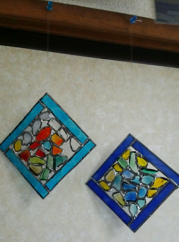 ひし形の枠にお好きなガラスをはめていきます!