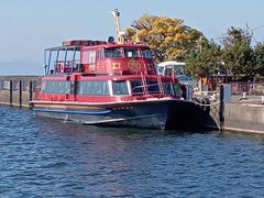 赤い直政で行くのがオーミマリン彦根港からの竹生島航路です。他の船の場合もあります。観音正寺、松尾寺など西国三十三所寺院にも割引券があります。