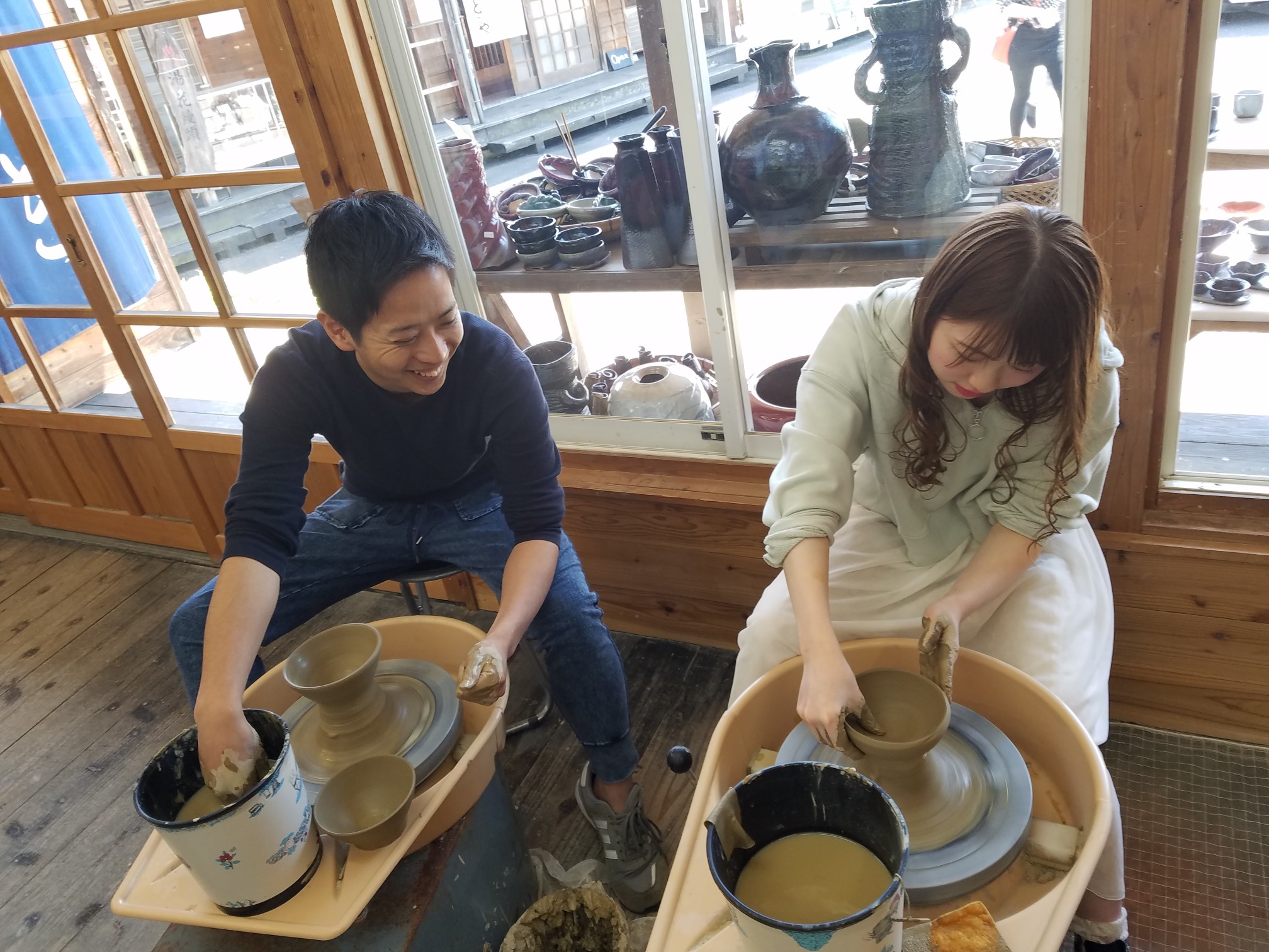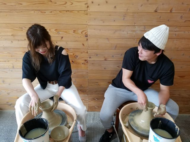 〈2名限定カップルプラン〉★湯の坪横丁の散策と一緒に♪思い出写真撮影☆由布院駅から5分の工房で電動ろくろ体験♪ろくろカバー付きなので汚れにくい★
