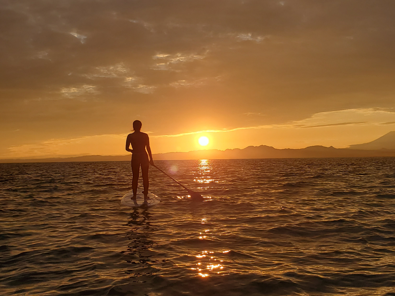 サンセットSUPコースでは赤く染まる夕日を眺めながらのSUPを楽しむことが出来ます。
