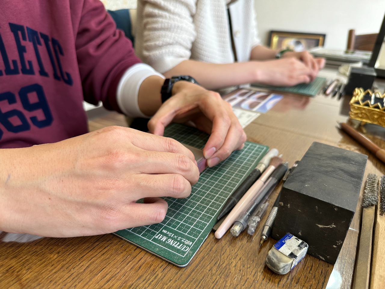 どのような形が良いか、イニシャルはどこに入れるかなど構想を練ります♪